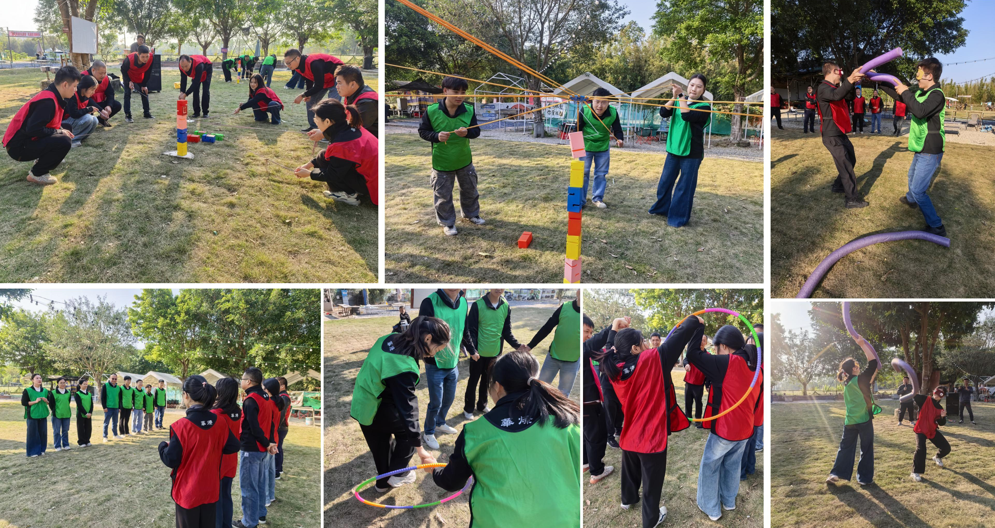 在专业教练的带领下,华燎战士们分成了2个队伍进行拓展游戏比拼。